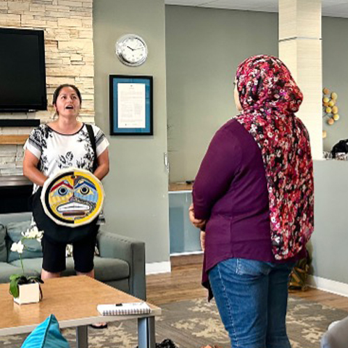 Judiciously, story-teller Anona Kampe of the Syilx Okanagan Nation sets the tone for the symposium with a tale that culminates in the Sylix speaking peoples’ three protocols: only take what you need, use what you take and give back in reciprocity.