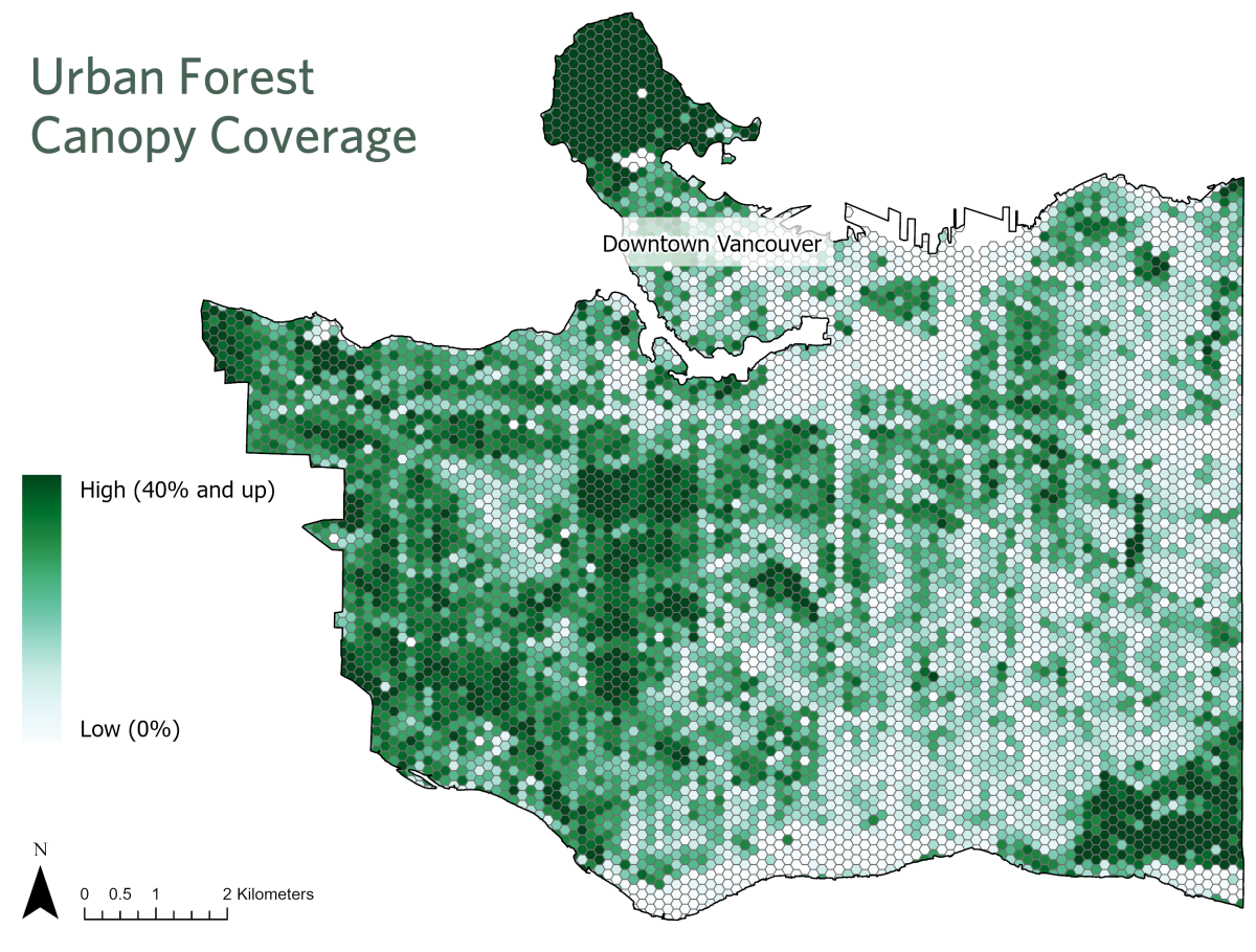 - Tree Canopy Cover: Indicates how much land is shaded by trees when viewed from above.