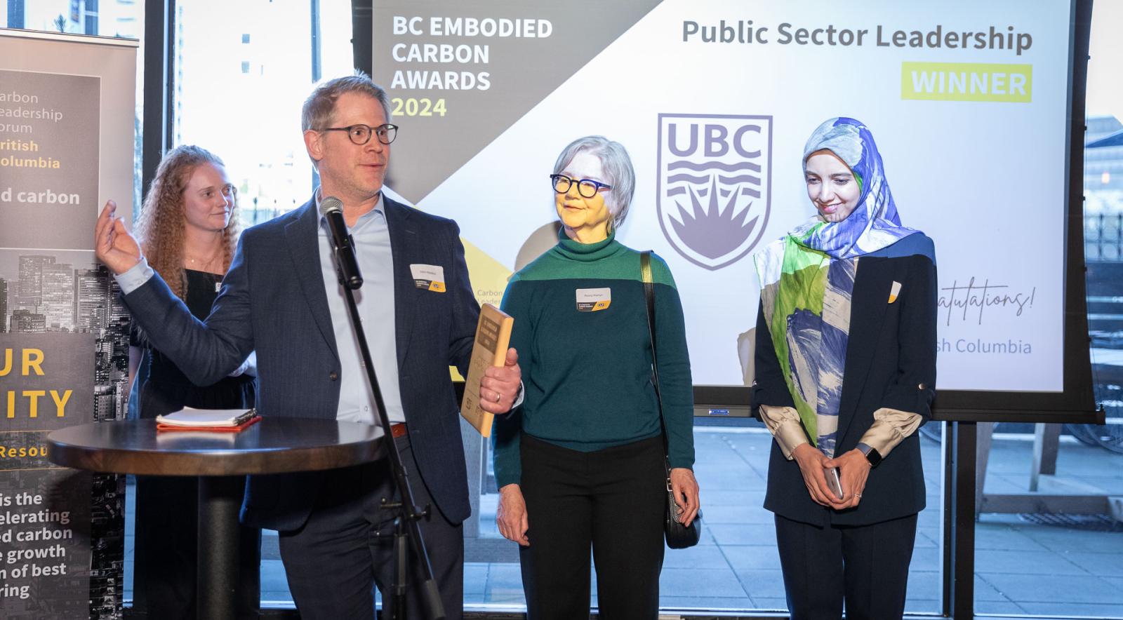 In April 2024, UBC was honoured to receive “Public Sector Leadership” award second annual competition hosted by the Carbon Leadership Forum British Columbia (CLF BC). Among the distinguished recipients of this coveted award were UBC researchers and leaders from UBC's Sustainability Hub, Campus and Community Planning, and UBC Okanagan Campus Planning departments.