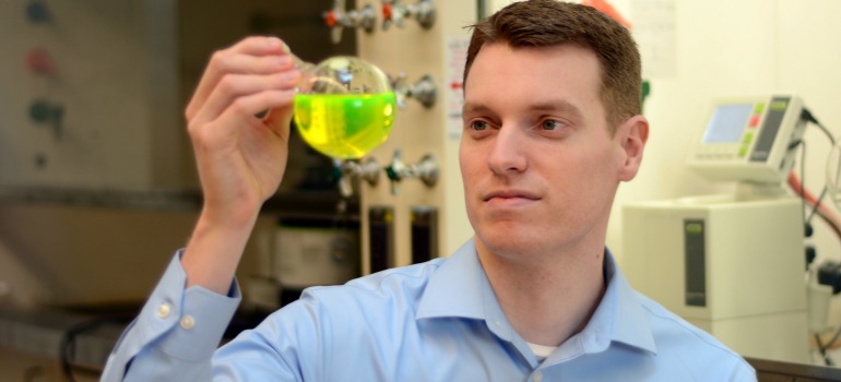 Within my own group, we work with both large and small companies to address sustainability problems. For instance, we've had an excellent collaboration for three years now with Bristol Myers Squibb, which is a large pharmaceutical company developing new, light-driven photochemical reactions. Their expertise in drug discovery and the practical implementation of a chemical process in scaled-up pharmaceutical production is really important to communicate to us what their technology needs are. We also work all the time with other researchers at this university and other universities because many of the problems we want to solve are very complex and require a lot of different skills to get there.